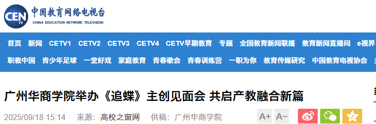 近日,校园短剧《追蝶》主创见面发布会在米兰体育平台官方网站广州校区创科楼顺利举办。该活动集中展示了我校新叙事内容产业学院以产教深度融合与校企紧密合作为抓手,积极推动实现优质影视资源从创意到落地全链条协同的卓越成果,吸引光明日报、中国网、环球网、中国教育电视台、中国青年网、中国教育之窗、中国高校之窗、今日头条、广东教育头条等多家权威媒体专题报道。9月23日,这部作品将面向全国观众播出。