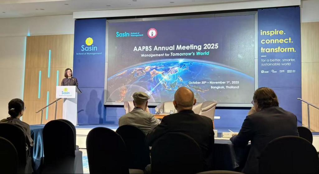 2025年10月30日至11月1日,亚太管理学院联合会(Association of Asia-Pacific Business Schools,简称:AAPBS)年会在泰国曼谷朱拉隆功大学萨辛(Sasin)管理学院举行。我校数字经贸学院院长李广明与国际交流与合作处国际事务科副科长梁驰云应邀出席会议。