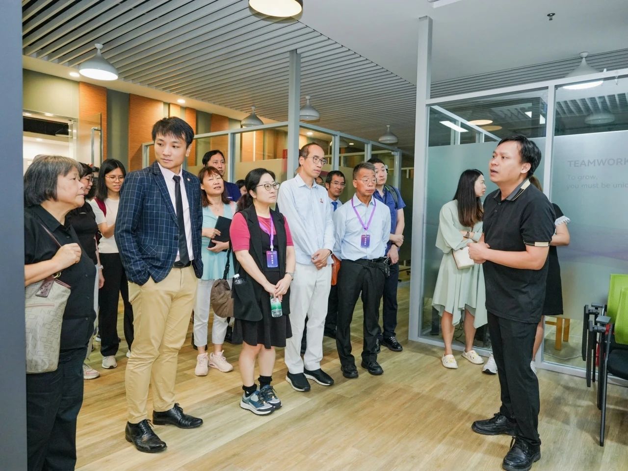 参访团走进了集创业孵化、技术研发、成果转化功能于一体的广东华商科技创新创业中心梦想空间。作为服务粤港澳大湾区青年创新创业的重要平台,这里汇聚了人工智能、文化创意、跨境电商等多个前沿领域的创新项目,为湾区青年提供覆盖创意孵化至产业落地的全链条支持服务。参访团成员表示,此种深度对接产业需求的育人实践模式,为大湾区高校深化产教融合提供了重要借鉴,对培养具有国际竞争力的创新型人才具有积极意义。